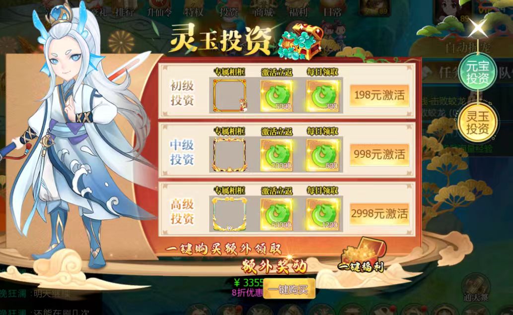 这个BUG是因为游戏0.05折后,会出现小数点后三位的金额,导致系统无法识别,建议玩家不要点击一键购买,请玩家分开买,就不会出现充值后没参与活动的情况。